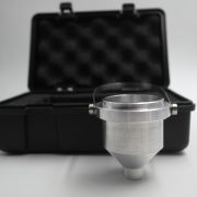 便携式粘度计的校正 将被效正粘度计测定得之粘度t1乘以修正系数k即为该粘度计测得之条件粘度t如下式所示: t=k.tl k值得求得有两种方法: 1、准粘度计法:首先配制五种以上不同粘度的航空油与变压器油的混合油,在 25±0.2℃时分别测其在标准粘度计及被效正粘度计中流出的时间,求出两粘度计一系列的时间比值k1、k2、k3、……..其算出平均值即为修正系数k。 2、粘度运动法:当缺少粘度液时,则t值按下列公式计算: 涂-1粘度计:t=0.53n+1.0 涂-4 粘度计 :t]=0.223n+6.0 n为在25±0.1℃下按GB265-75《粘度计测定法》测定的航空油与变压器油的混合油的运动粘度(厘斯)有此求得的一系列t与被效正粘度测得的一系列t1之比值的自述平均值即为kw值。(1厘斯=1×10) 技术参数